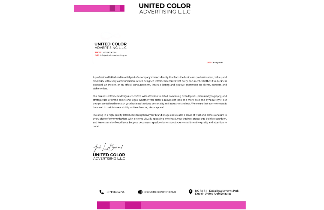 Our commitment to excellence is unwavering, evidenced by rigorous quality checks at every stage of every project. As one of Dubai’s premier commercial printers, UNITED COLOR ADVERTISING L.L.C takes pride in its hands-on approach to assignments and the close bonds we forge with our clients.